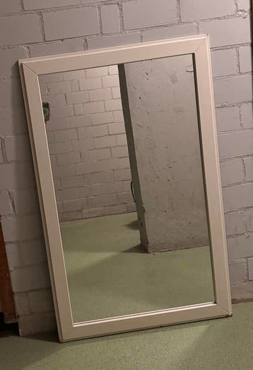 Grote spiegel rechthoekig. Spiegel is helemaal goed . Hout kan een likje verfje gebruiken.