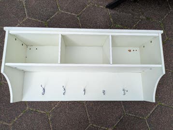 Witte kapstok. Afmetingen: 90 breed, 28 diep. Gebruikt, hier en daar beschadigingen. Zie foto's