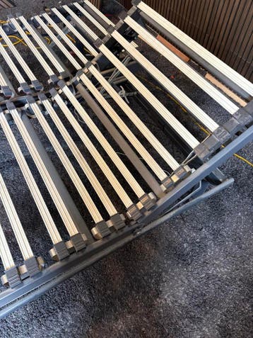Verstelbare lattenbodem van acor flex. Afmetingen 190x90cm. Geschikt voor matrassen van 90x200 cm. De lattenbodem rust op een frame wat staat op stevige poten, deze staan ongeveer 30 cm hoog. De latte