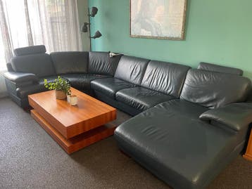 Gratis af te halen: ruime en comfortabele blauwe leren hoekbank. De bank is gebruikt, maar kan zeker nog een ronde mee. Ideaal voor een studentenkamer, starters of als extra bank. Zelf ophalen en verv