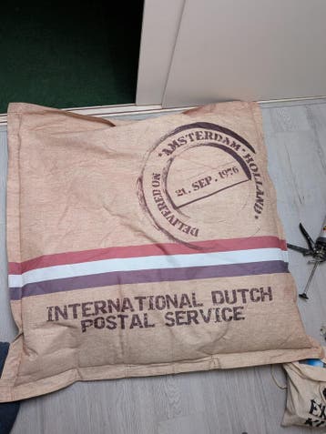 Gebruikt, iets verkleurd ook. Zit weinig vulling in. Moet weg.