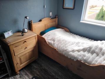 Zie foto's,zgan,geen beschadigingen,zwaar massief mdf stevig 1 persoons( 90x200) seniorembed incl bedbodem,en bijhorend nachtkastje met 2 lades en 1 deur! Met voor en achter 2 verhogingen zodat u