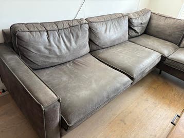 Mooie leren hoekbank met stalen onderstel