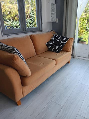2 persoons geel bankje ik verkoop dit omdat er geen plaats meer is voor het bankje de conditie is goed en zonder vlekken. Zelf ophalen
