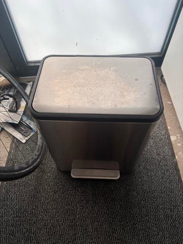 Prullenbak met 2 vakken om afval te scheiden. Is gebruikt dus mag gratis afgehaald worden.