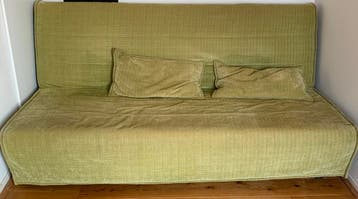 Staat de advertentie nog online? Mooi. Dat betekent inderdaad dat het item nog beschikbaar is. Afmetingen - uitgeklapt: 140x200 - ingeklapt met rugleuning rechtop: 70x200 - matrasmaat: 140x200 de beke
