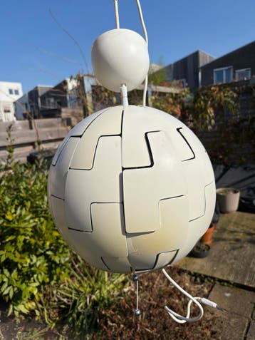 Prachtige ikea ps 2014 hanglamp in het wit. Deze lamp heeft een uniek, modern design dat aanpasbaar is in intensiteit door de lamellen te openen of te sluiten. Perfect voor boven een eettafel of als s