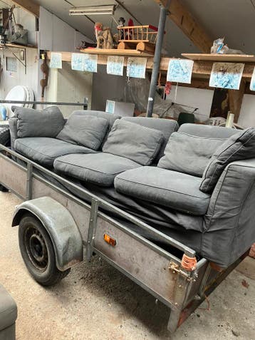 Onze fantastische bank is vervangen. Zit nog heerlijk, maar past niet meer in onze inrichting en is vervangen door een grotere bank. Bank lijkt op een linteloo, maar is het niet. De kussens van de ban
