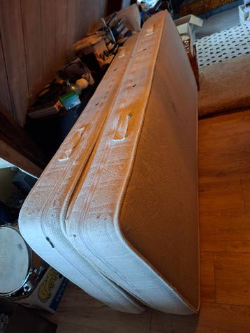 Mogen weg, zijn over. Twee matrassen 80 x 200 en 17 cm dik. Afneembare en wasbare hoezen.
