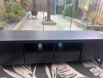 Zwart tv meubel van 1.90Cm breed en 56cm hoog. Het meubel is 2 jaar oud en in goede staat. De nieuwprijs was 459 euro. Ophalen in brielle. Let op: past niet in een auto, een busje of aanhanger is aan