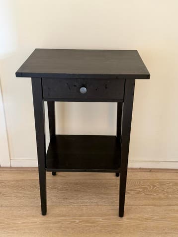 Dit compacte zwarte kastje is ideaal als nachtkastje of bijzettafel. Het beschikt over een handige lade voor kleine spullen en een open vak eronder voor extra opbergruimte of decoratie. Het kastje is