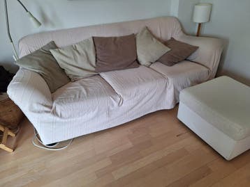 3-zitsbank (inc. Granfoulard), fauteuil (inc. Granfoulard) en voetenbank gratis op te halen . Maten: bank 210b x 90d x 80h fauteuil 95b x 80d x 90h voetenbank 60b x 60d x 40h alle 3 wit/ecru kleur, va