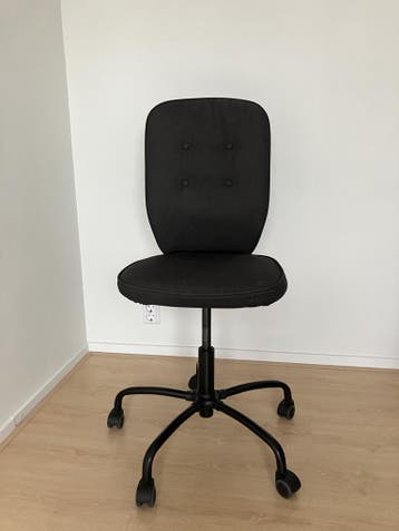 Antraciet kleurige bureaustoel op wieltjes en in hoogte verstelbaar.