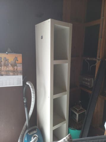 Gratis af te halen: een handige kast met vier open vakken. Ideaal voor boeken, decoratie of als extra opbergruimte. De kast is gebruikt