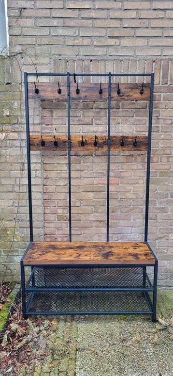 Mooie en praktische kapstok met geïntegreerde schoenenbank. Ideaal voor de hal of entree.