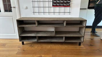 Ophalen in utrecht zuilen zelf gemaakte kast, kan een opknapbeurtje gebruiken. Staat op 5 (zwarte) poten afmetingen zijn 175cm breed 75cm hoog (dat is incl zwarte poot van 13cm) 40cm diep vakken hebbe
