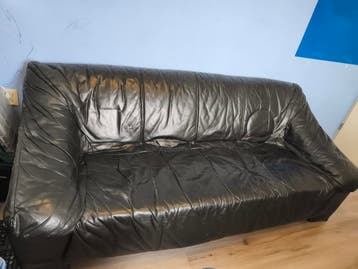 Gratis af te halen: comfortabele leren bank. De bank heeft duidelijke gebruikssporen, maar kan met wat liefde nog prima een ronde mee. Ideaal voor een studentenkamer, mancave of als tijdelijke oplossi