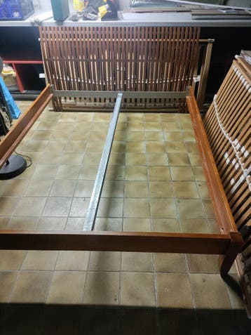 Houten bedframe te koop. Staat momenteel in de kelder i.v.m. Aanschaf nieuw bedframe. 160X200 exclusief lattenbodem en matras.