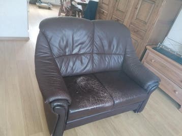 Tweezitter en driezitter. Deze banken zitten nog prima. De bekleding is niet nieuw meer. Tweezitter 1,35 breed x 0,85 diep x 0,96 hoog driezitter 1, 90 breed x 0,85 diep x 0,96 hoog.