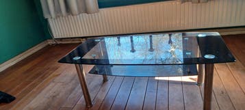 Leuke glazen salontafel en een nette opklapbed met matras gratis ophalen. Er is ook nog een net en goed campingbedje met een goed dik matrasje en een opklap box. Allemaal gratis ophalen, ik geef dit w