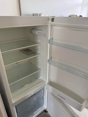 Deze bosch koelkast heeft een vriesvak onderin. Binnenin zijn er glazen planken en lades. De koelkast is wit van kleur en heeft een bosch logo op de deur. Koelkast is gratis af te halen in mijdrecht.