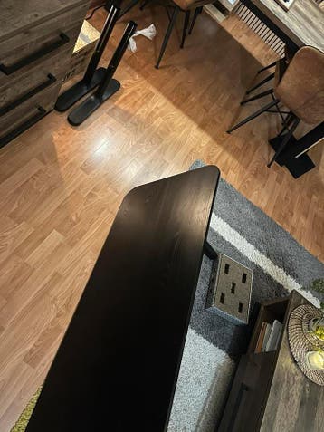 Mooi zwart bureau te koop, perfect voor een thuiskantoor of studeerplek. Het bureau is in goede staat en biedt voldoende ruimte voor een laptop, monitor en andere benodigdheden. Het heeft een strakke,