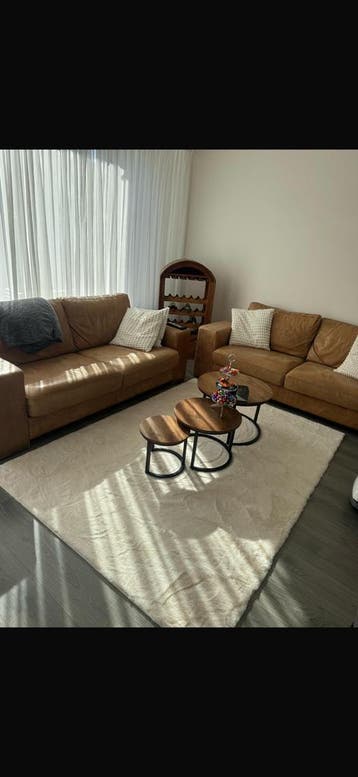 Twee leren banken, gebruikt maar zit nog heerlijk. Gratis af te halen voor dinsdag 22-04 in muziekwijk almere.