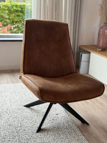 De stoel is op het draaipunt los/stuk van de stoel. Dit kan ongetwijfeld door iemand gemaakt worden die handig is. Vandaar gratis deze bruine stoel heeft een zwarte draaivoet. De stoel is bekleed met