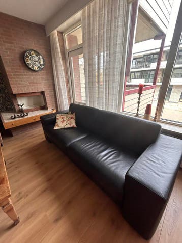 Mooie leren bank, amper gebruikt. De bank staat op de eerste etage, er is een lift aanwezig. De bank is zwart van kleur en heeft een modern uiterlijk.