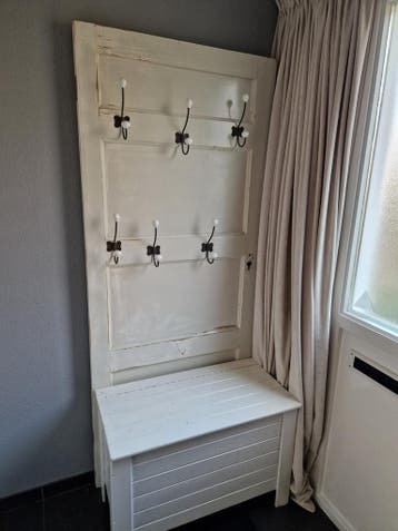 Witte oude deur met handschoenen bak
