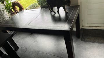Eettafel maat 160 x 85, is gebruikt en blad is beschadigd. Gratis af te halen als het lukt voor zaterdag 18.4 Andere breng ik hem weg naar de stort