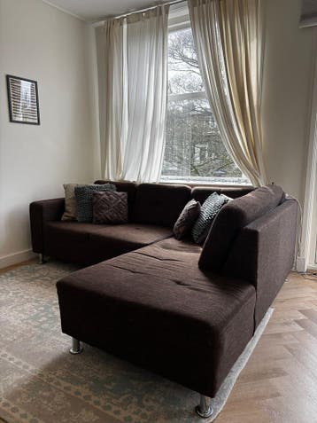 Gebruikte hoekbank, bruin van kleur. Er zijn zeker gebruikssporen (zie foto’s!), Maar hij is niet vies. Afmetingen zijn 230x180x90. Gaat wegens verhuizen weg. Gratis op te halen (wonen op derde verdie