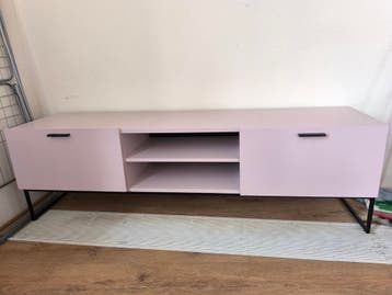 Zie foto's niet alles ziet er goed meer uit, vandaar dat deze gratis opgehaald mag worden. 53 Cm hoog ongeveer. Zie laatste foto's voor afmetingen. Dit is een roze tv-meubel met twee deuren aa