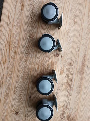 Set van vier wieltjes voor een bureaustoel. Ze zijn grijs met een zwarte rand. De wieltjes zijn eenvoudig te bevestigen dmv een plaatje waarbij 4 schroeven nodig zijn. Je mag het gratis komen op halen