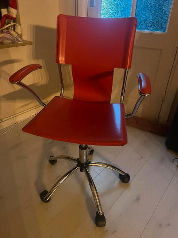 Comfortabele rode bureaustoel met armleuningen en een verstelbare hoogte. De stoel is in goede staat en ideaal voor thuiswerken of