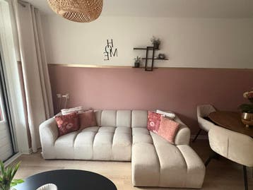 Wegens de aanschaf van een nieuwe bank bied ik deze bank gratis aan. De bank heeft wat lichte schades (zie foto's), maar met een plaid en kussens zie je hier weinig van. Perfect voor iemand die ni