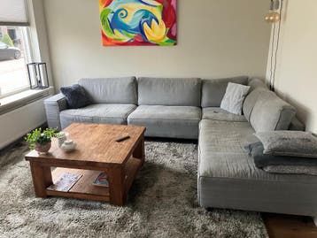 Gratis af te halen hoekbank. Circa 8 jaar oud. Twee scheuren in de bekleding.