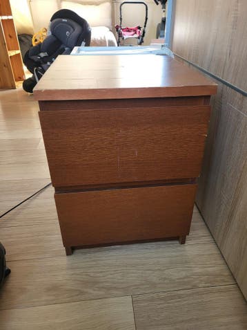 Gebruikt malm nachtkastje dat een beetje liefde kan gebruiken. Ideaal voor de handige klusser die het een tweede leven wil geven. Het nachtkastje heeft gebruikssporen en kan een opknapbeurt gebruiken,