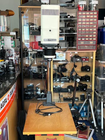 Gratis! Dit is een meopta opemus 5 vergroter met een meopta anaret 50mm f/4.5 Lens en filmhouder voor 35mm tot 6x6 cm (middenformaat). De meopta opemus 5 is een robuuste, in tsjechië gemaakte donkerek