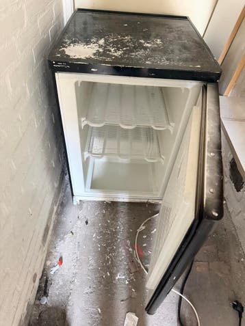 Deze vriezer is gratis op te halen. Het is een zwart model met een witte binnenkant en heeft twee rekken. De buitenkant heeft wat gebruikssporen.