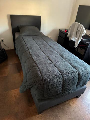 Gratis af te halen! Gebruikte boxspring+matras. Matras is 230cm lang, met het hoofdbord samen is het bed 240cm. Ideaal voor lange personen. Door het speciale schuim en combinatie met pocketvering ligt