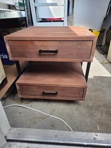 Nachtkastje met twee lades en open tussenstuk. Gebruikssporen zichtbaar op bovenkant (zie foto)