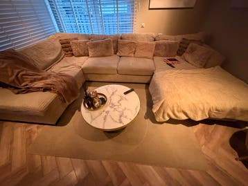 Gratis vandaag af te halen!! Er zitten wat kleine vlekjes op, met dasty kun je dat wel eruit krijgen. Van de grote kussens is de rits stuk. Krijgen vandaag een nieuwe bank. Deze ruime en comfortabele