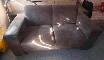 Comfortabele tweezitsbank in goede staat. De bank is bruin van kleur en heeft een moderne uitstraling. Ideaal voor een kleine woonkamer of appartement. De bank is gemaakt van stof en is makkelijk te o
