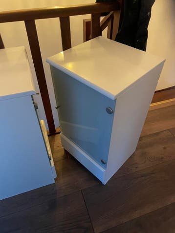 2 nachtkastjes met onderin lade. Achterkant is opening gemaakt ivm stroom. Gratis af te halen