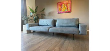 Zie voor aanvullende foto’s de andere advertentie. Mooie passe partout zico bank met een strak en modern design. De bank is uitgevoerd in een blauwe geweven stof en verkeert in goede staat. Afkomstig