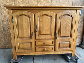 Mooie meidenkast van blank eikenhout, afmetingen 182x49x140cm. De kast is gratis af te halen. Ideaal voor wie snel een functionele en sfeervolle kast nodig heeft. Een meidenkast met drie deuren en twe