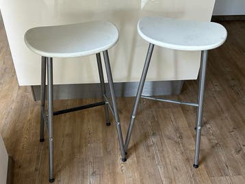 Twee gebruikte barkrukken met voetsteun. De krukken zijn niet meer nieuw. Gratis af te halen.