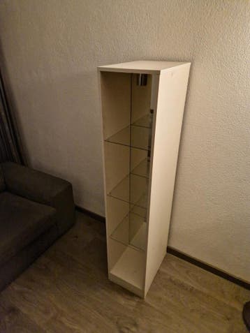 Mooie drankkast of vitrinekast met glazen planken, gratis op te halen. Ideaal voor het tentoonstellen van uw favoriete flessen of decoratieve items. De kast is gebruikt, maar in goede staat. Afmetinge