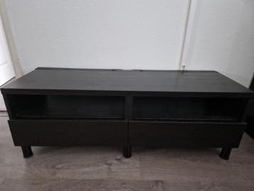 Gratis af te halen: donkerbruin tv meubel met twee open vakken en twee lades. Ideaal voor je televisie en media-apparatuur. Het meubel is gebruikt, maar nog in goede staat. Afmetingen: breedte ongevee